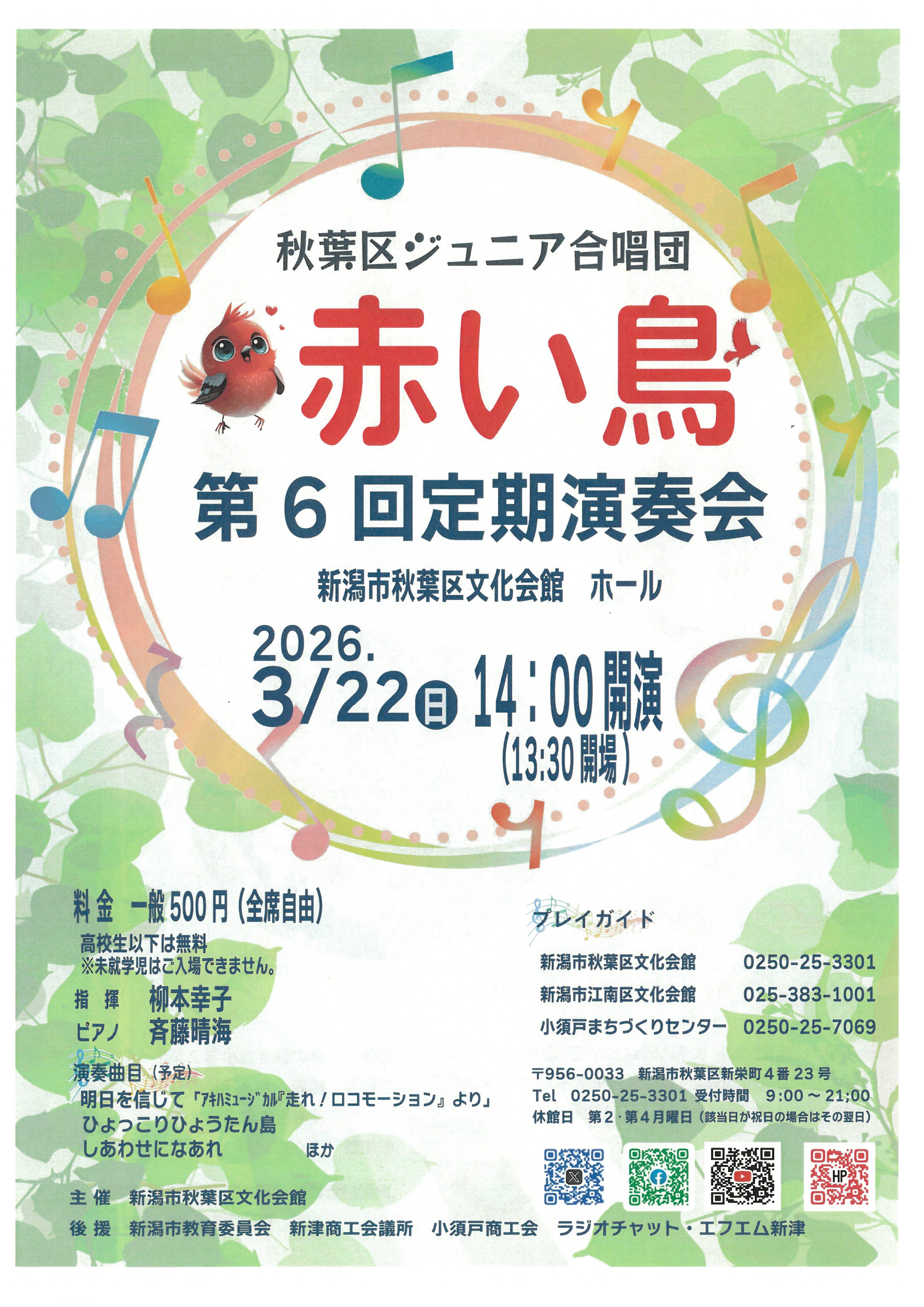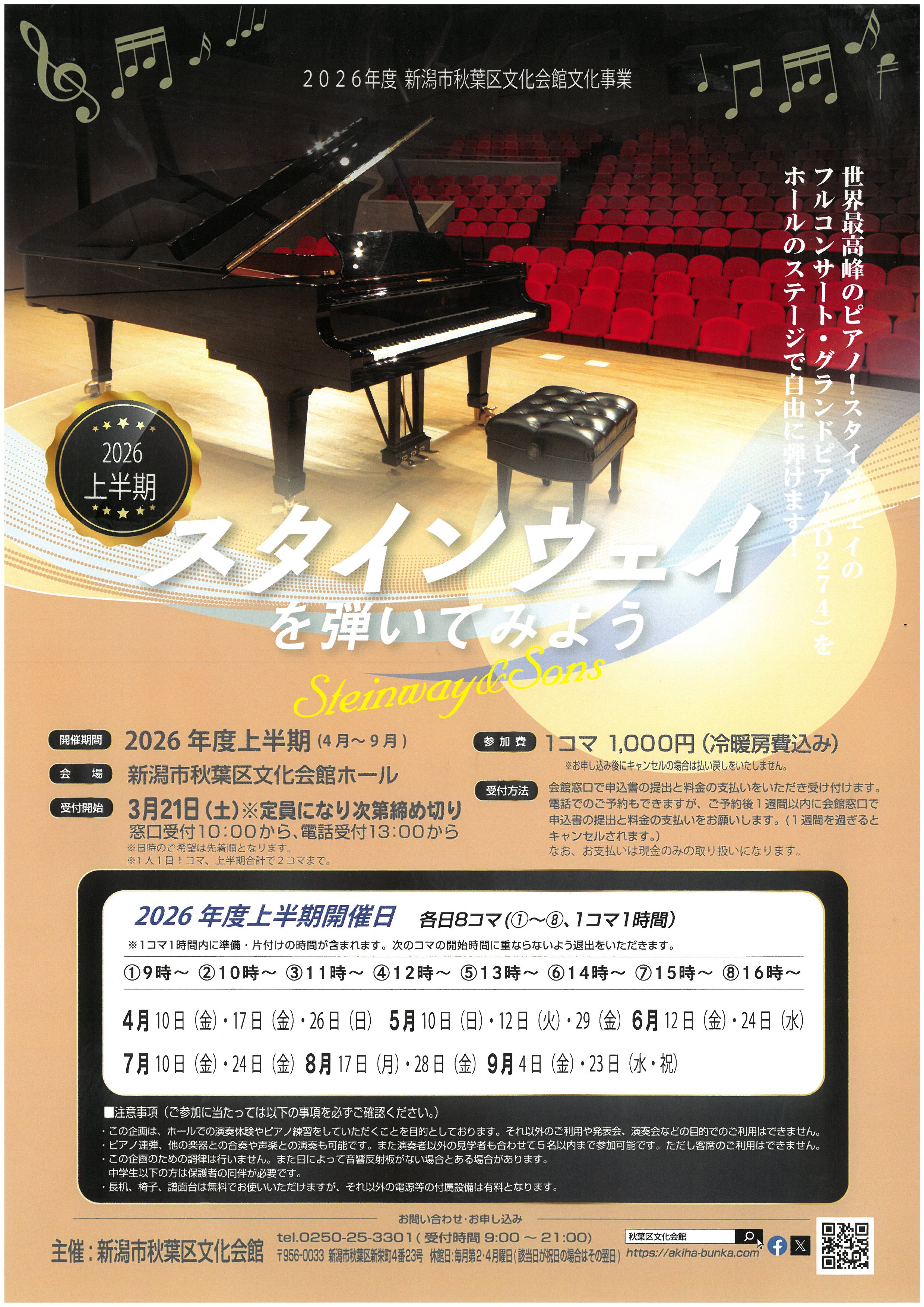 チケット状況:好評発売中!※秋葉区文化会館以外は2月2日(月)から発売予定。