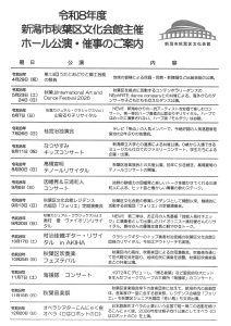 令和8年度 新潟市秋葉区文化会館主催ホール公演・催事のご案内